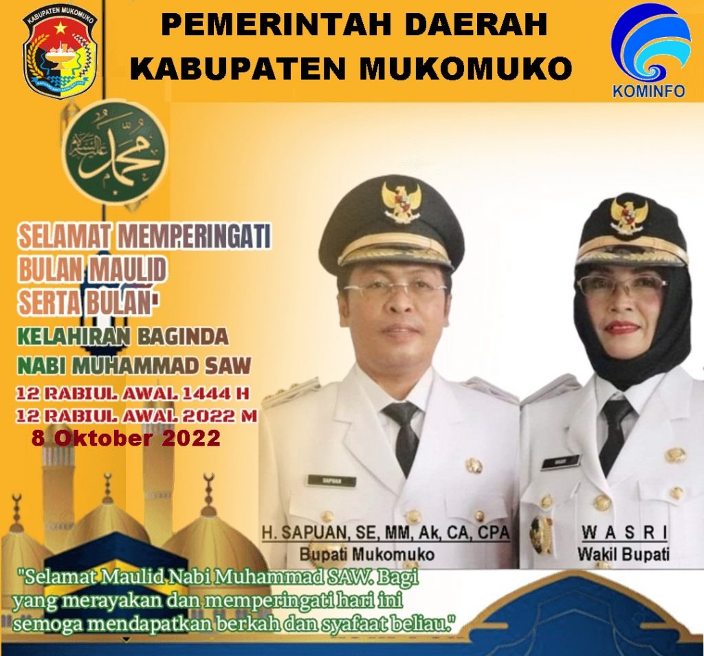 Pemerintah Daerah Kabupaten Mukomuko Mengucapkan Selamat Memperingati Maulid Nabi Muhammad SAW Tahun 2022_Tingkatkan Kinerja dan Kerja Profesional Dengan Penuh Amanah