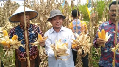 Wakil Bupati Mukomuko, Wasri turut menghadiri kegiatan panen jagung jenis perkasa oleh kelompok tani Desa Tirta Mulya yang digelar pada Kamis (10/11/22).