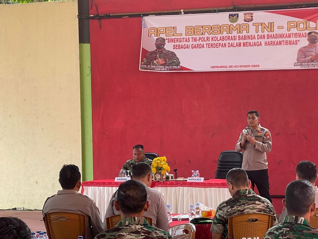 telah dilaksanakan kegiatan Apel Bersama TNI – POLRI dengan Tema “ Sinergitas TNI – POLRI Kolaborasi Babinsa Dan Bhabinkamtibmas Sebagai Garda Terdepan Dalam menjaga Harkamtibmas” giat dilaksanakan pada Jum’at siang sekira pukul 13.40 wib (25/11/2022).