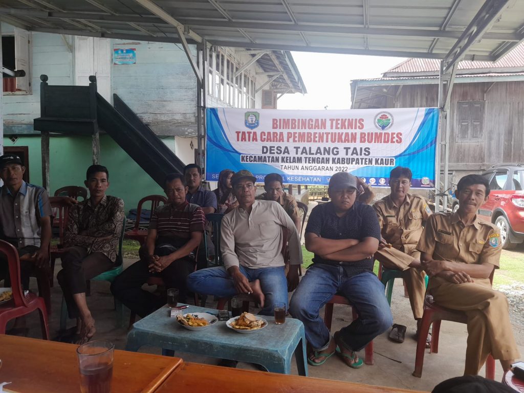 Bengkulu Post – Kaur,BumDes adalah salah satu untuk meningkatkan tahap hidup masyarakat pedesaan , saat ini BumDes sedang diminati oleh masyarakat guna untuk meningkatkan perekonomian rakyat, seperti halnya desa Talang Tais Kecamatan Kelam Tengah , hari ini Senin (28/11/22) telah membentuk BumDes dengan struktur pengurus yang lengkap.