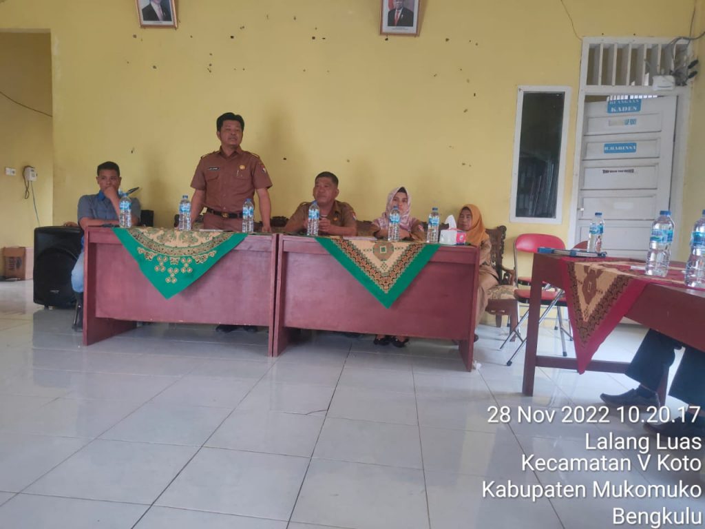 Mukomuko-Bengkulupost.id – Pemerintah Desa Lalang Luas Kecamatan V Koto menggelar Kegiatan Monitoring dan Evaluasi (Monev) pekerjaan pembangunan Fisik Tahap IIITahun 2022 dari Kecamatan V Koto Kabupaten Mukomuko ( 28/11/2022 )