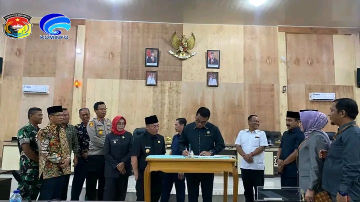 Bupati Mukomuko bersama Pimpinan DPRD Mukomuko melakukan Penandatanganan Persetujuan Bersama Rancangan Peraturan Daerah (Raperda) APBD Tahun 2023 menjadi Peraturan Daerah (Perda).