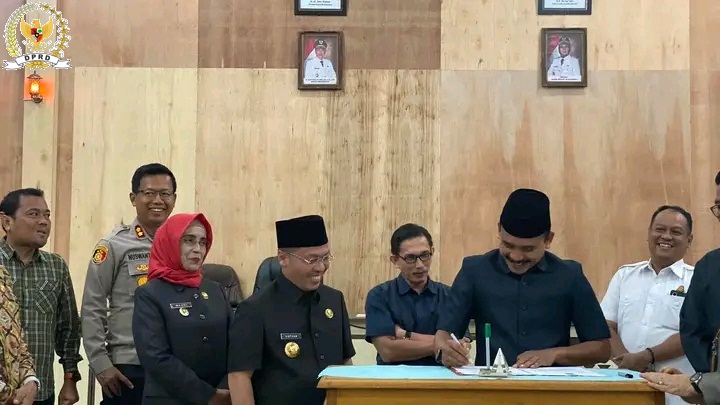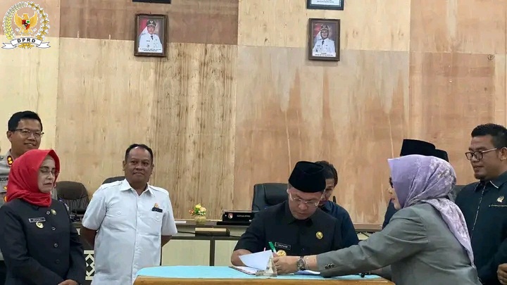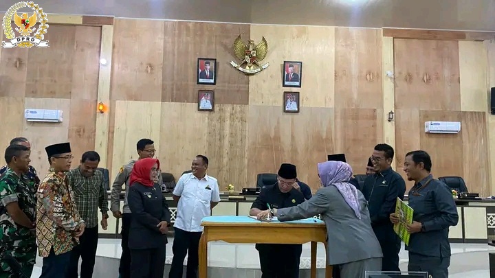 Bupati Mukomuko bersama Pimpinan DPRD Mukomuko melakukan Penandatanganan Persetujuan Bersama Rancangan Peraturan Daerah (Raperda) APBD Tahun 2023 menjadi Peraturan Daerah (Perda).