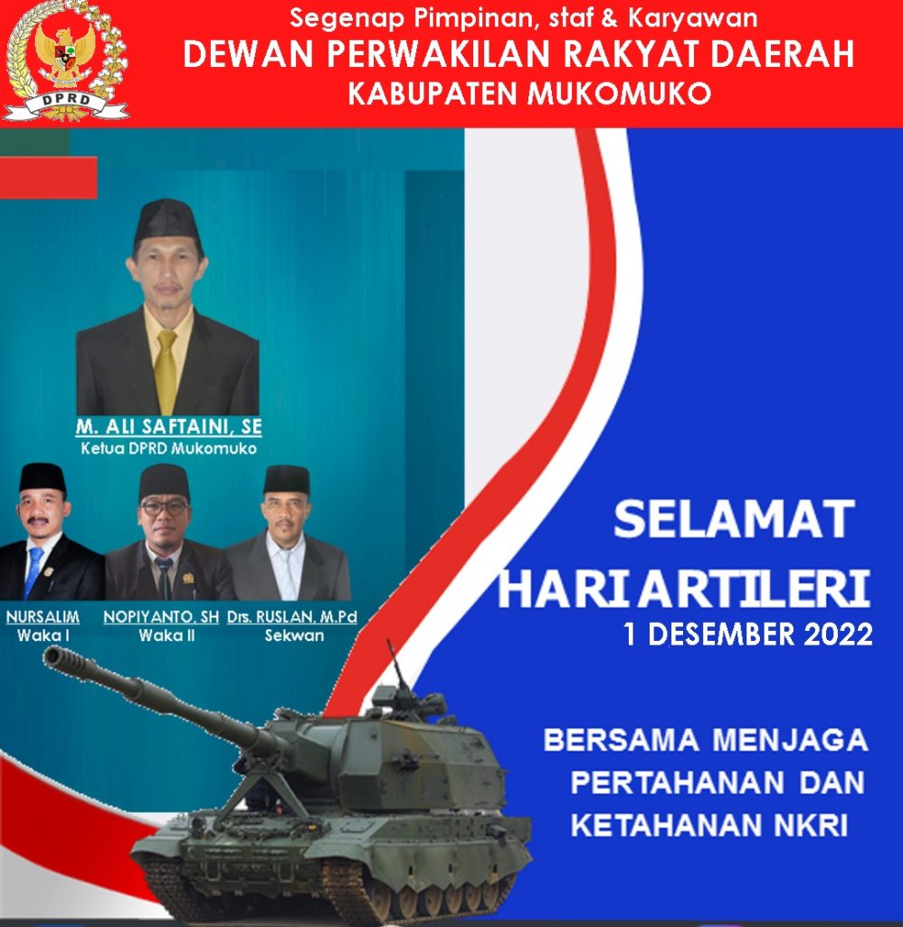 Segenap Pimpinan, Staf dan Karyawan Dewan Perwakilan Rakyat Daerah Kabupaten Mukomuko_Selamat Hari Artileri 2022-Bersama Menjaga Ketahanan & Pertahanan NKRI