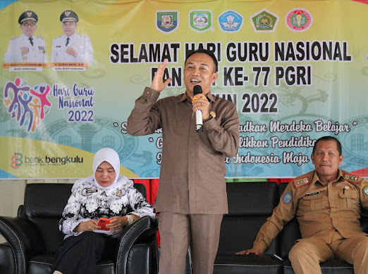 Dalam sambutannya Ketua DPRD secara langsung mewakili keluarga besar DPRD Kabupaten Kepahiang mengucapkan selamat Hari Guru Nasional dan Hari Ulang Tahun PGRI ke-77 Tahun 2022.