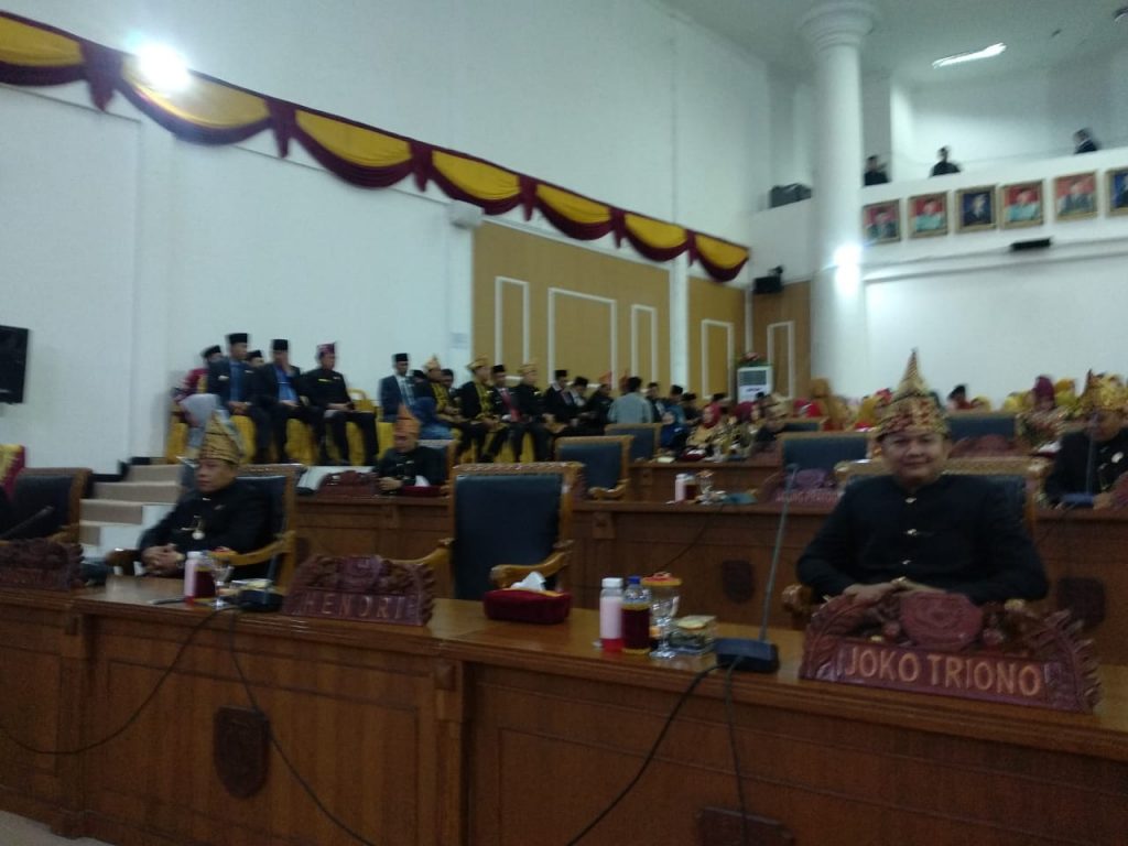 Rapat Paripurna dipimpin Ketua DPRD Windra Purnawan, SP, didampingi Waka 1 Andrean Defandra, SE, M.Si, Dr.Ir.Hidayatullah Sjahid, MM, IPU, Wakil Bupati H. Zurdi Nata, S.IP, Stap Ahli Gubernur Drs. H. Erlangga, M.Si serta segenap anggota DPRD Kabupaten Kepahiang.