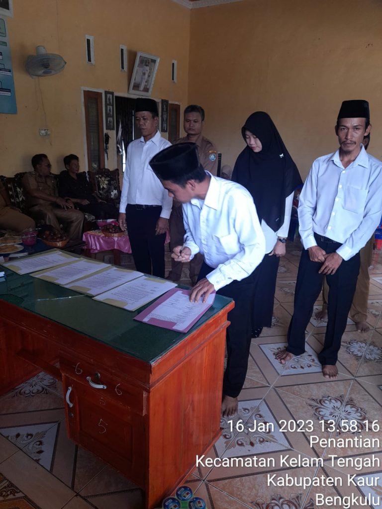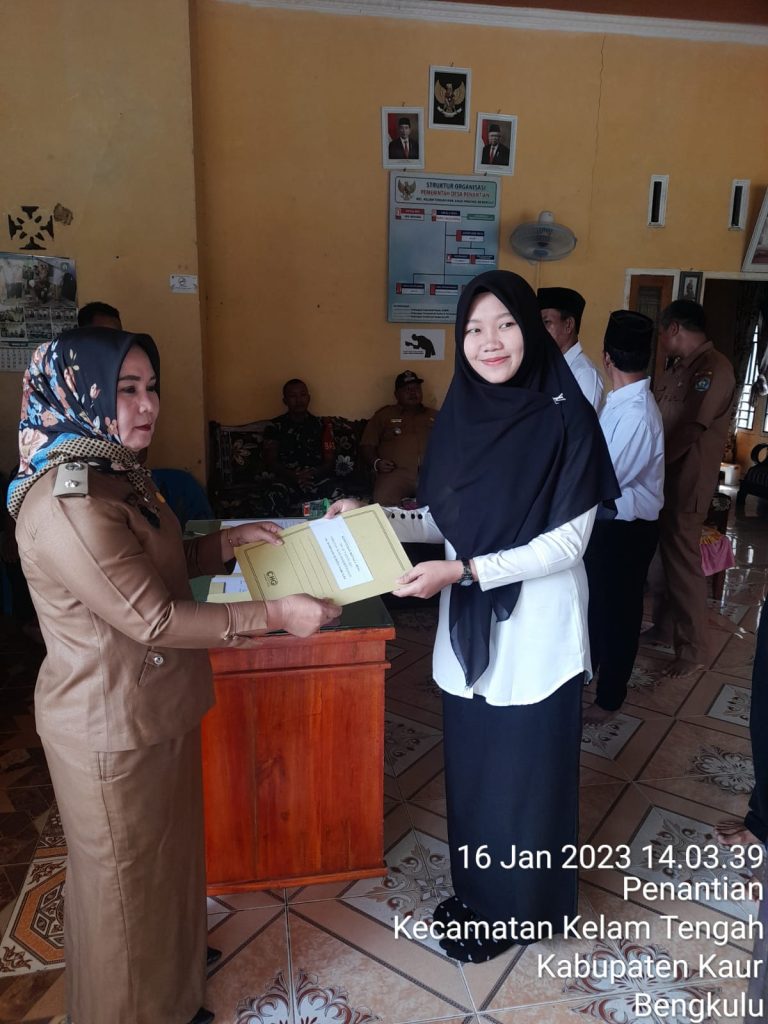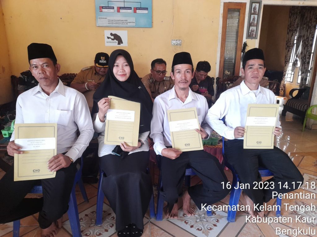 Bengkulu Post – Kaur,Kepala desa Penantian Nini Lasuarni Senin 16 Januari 2023 resmi memberhentikan 5 perangkat desa yang lama sekaligus mengangkat Sugio jadi Sekretaris Desa yang baru.