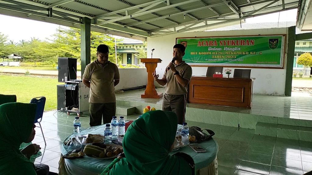 Acara syukuran Hari Jadi Kodim 0428/MM ke-5 tahun 2023. Bertujuan sebagai bentuk rasa syukur atas berdirinya kodim 0428/MM. Agar kedepannya bisa membantu dan mengatasi kesulitan-kesulitan rakyat atau masyarakat di wilayah Kabupaten Mukomuko.