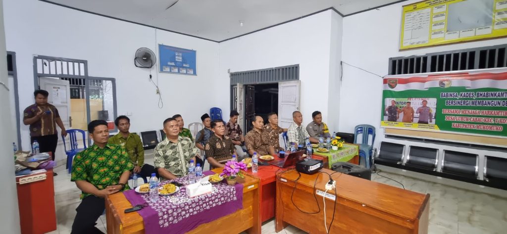 Mukomuko-Bengkulupost.id.-Kapolsek v koto,IPDA Irfansyah Damanik.SH.Bersama Pemdes Lubuk Cabau beserta Perangkat Nonton Bareng ( Nova ) bertempat di Aula Kantor Desa Lubuk Cabau kecamatan v koto kabupaten Mukomuko,