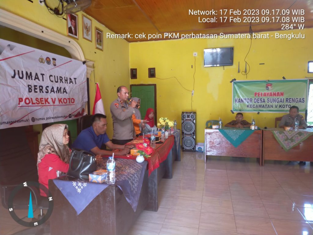 Bengkulu Post | Mukomuko,Polsek V Koto menggelar Jum’at Curhat dengan Pemerintahan Desa Sungai Rengas di Aula Kantor Desa Sungai Rengas Kecamatan V Koto Kabupaten Mukomuko, Jumat (17/2/23)