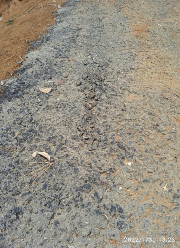 baru selesai di monev pada tanggal (28/01/2022) di kerjakan namun nampak jelas jalan lapen nya kurang matrial dan Aspal nya pun beberapa titik pekerjaan yang di kerjakan banyak tanggal alias lepas, dan kemungkinan kalau ada mobil masuk jalan nya pun akan hancut parah,