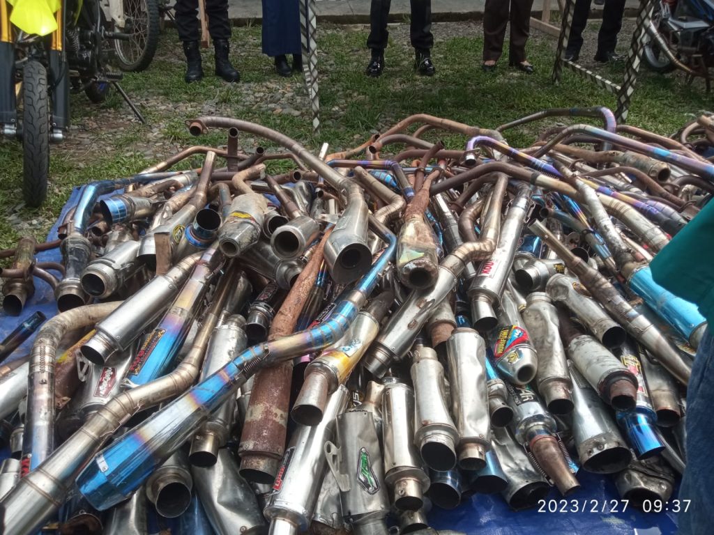 “Serta, terkait dengan knalpot brong, ada sebanyak 406 knalpot brong yang disita. Sedangkan kendaraan yang menggunakan knalpot brong yang disita sebanyak 53 unit kendaraan, ” Tambah Kapolres.