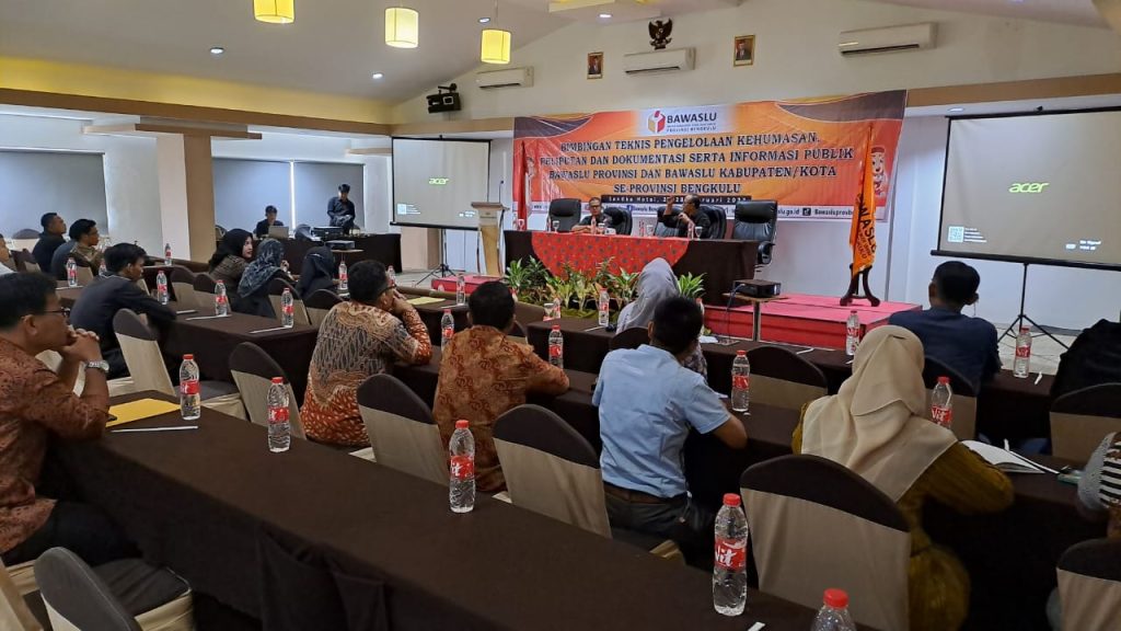 Bengkulu – Bengkulu Post –Badan Pengawas Pemilihan Umum (Bawaslu) Provinsi Bengkulu menyelenggarakan Bimbingan Teknis (Bimtek) Pengelolaan Kehumasan, Peliputan dan Dokumentasi serta Informasi Publik di Hotel Santika, 27-28 Februari 2023.