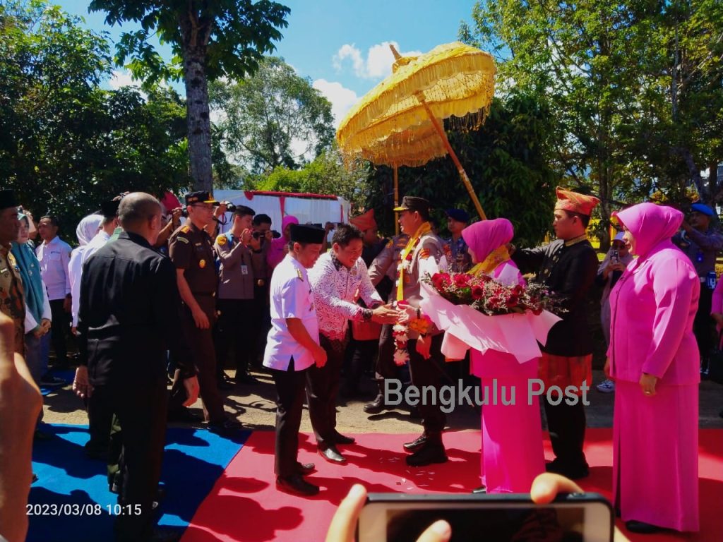 Bengkulu Post | Lebong_Kunker perdana, Kapolda Bengkulu Irjen Pol. Drs. Armed Wijaya, M.H didampingi PJU ( Pejabat Utama ) Polda Bengkulu disambut Kapolresta Kombes. Pol. Aris Sulistyono, S.H, M.H, beserta PJU Polres Lebong dan unsur Forkopimda Kabupaten Lebong di halaman Mapolres Lebong