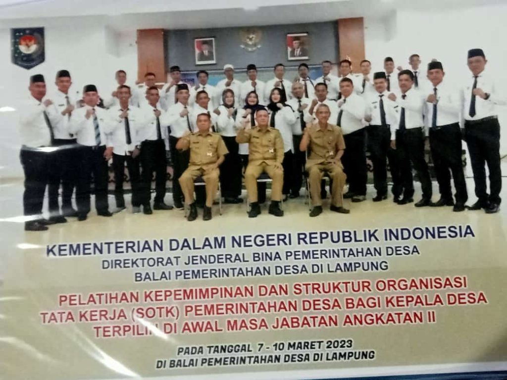 Kepahiang – Bengkulu Post –Tiga (3) Kepala Desa utusan Kabupaten Kepahiang Clear Mengikuti Pelatihan Kepemimpinan Struktur Organisasi dan Tata Kerja Pemerintah Desa bagi Kepala Desa terpilih diawal masa jabatan angkatan ke dua tahun 2023 diselenggarakan oleh Balai Pemerintah Desa di Lampung dan didanai Dirjen Bina Pemerintahan Desa Kementrian Dalam Negeri Selama 4 hari, Demikian disampaikan Kades Batu Bandung Iwan Pradesa saat tiba di Kepahiang, Sabtu sore (11/3/2023).