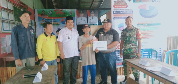 Usai penyampaian dari para pengisi acara, langsung penyerahan BLT-DD secara simbolis. Kemudian di lanjutkan dengan penyerahan secara menyeluruh yang di pimpin oleh ketua BPD setempat Sipta Miarip, S.Sos.(ns)