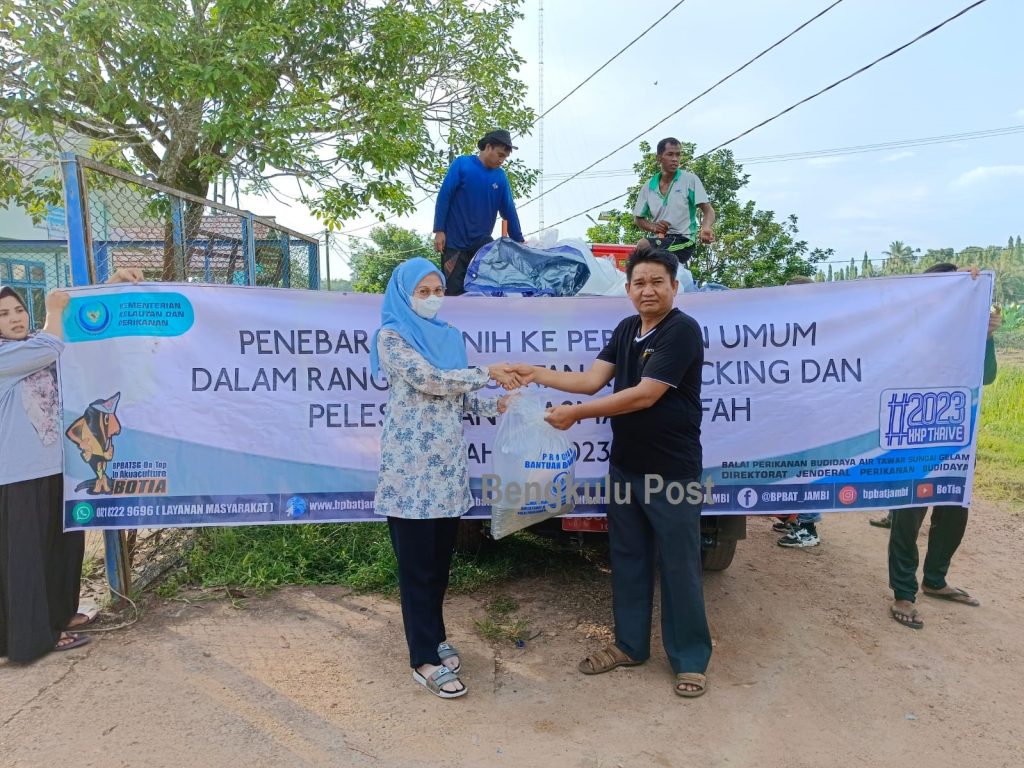 Bantuan benih ikan lokal dari BBAT Sungai Gelam Jambi, untuk Restoking Danau Tes dan Perairan umum di Kabupaten Lebong.