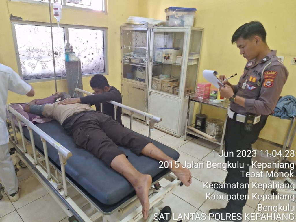 Kasat menambahkan ” Akibat Kecelakaan tersebut pengendara sepeda motor mengalami luka – luka, luka robek kepala bagian belakang kemudian di bawa ke RSUD Kepahiang,” ujarnya.