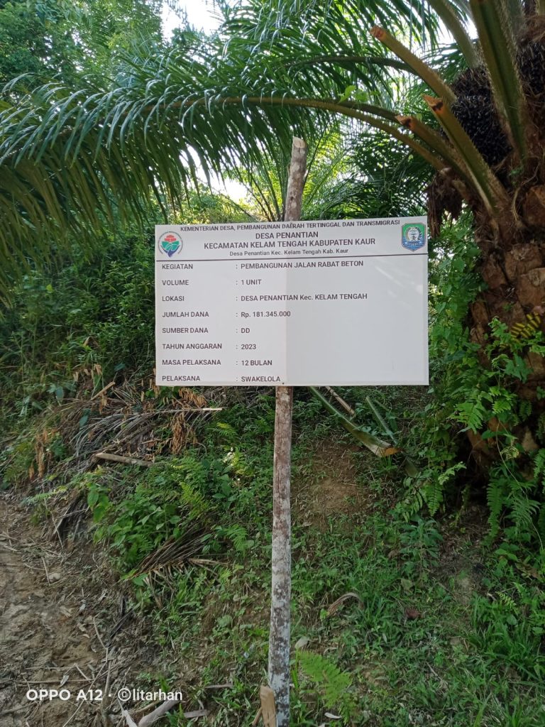 Berdasarkan persetujuan dari pihak pemerintah daerah bahwa desa Penantian tahun 2023 di sahkan untuk membangun Rabat Beton dengan ukuran Panjang 150 meter , lebar 3 meter serta ketebalan rabat 20 Cm.