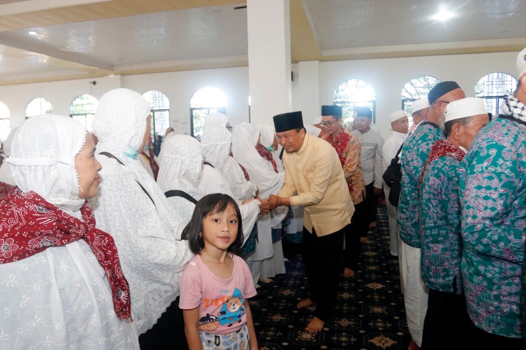 “saya juga meminta kepada para jamaah haji dilingkungan masing-masing untuk ikut mengajak masyarakat, adik sanak disekitarnya untuk ikut meramaikan dan memakmurkan serta mengidupkan salat lima waktu di masjid” Pungkasnya.