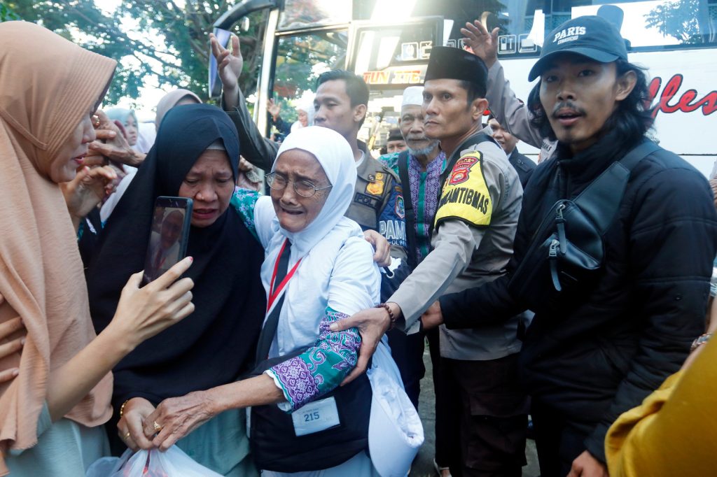 Suasana haru tergambar saat tiga unit bus yang mengakut jamaah haji tersebut sampai di halaman Masjid Agung Al-Kahfi, dimana ratusan keluarga jamaah sudah menanti kedatangan sejak dinihari