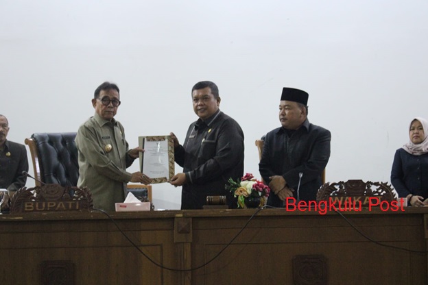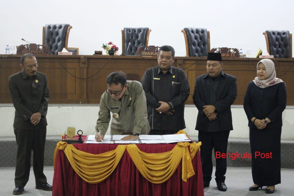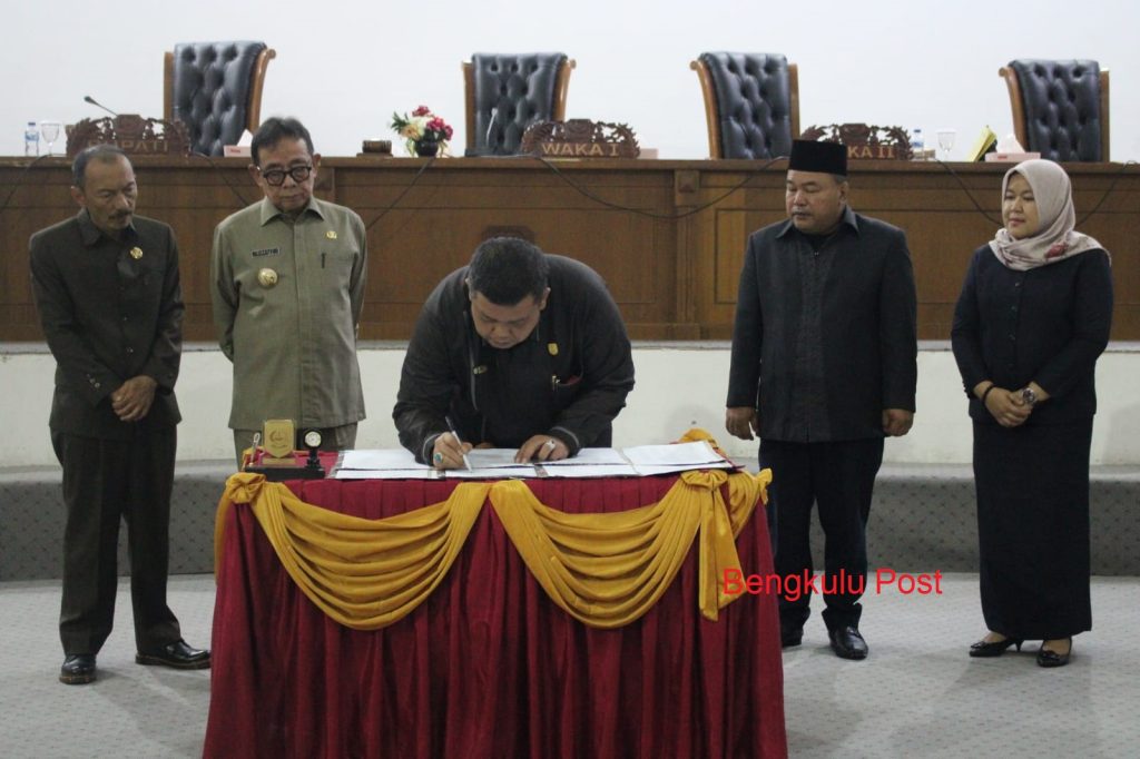 Penandatanganan ini dilakukan Pimpinan DPRD dan Bupati Kepahiang usai Nota Kesepakatan yang dibacakan Kepala Bagian Persidangan Sekretariat DPRD, Irva Ofyantari, S.Hut disetujui oleh seluruh peserta forum Rapat Paripurna.