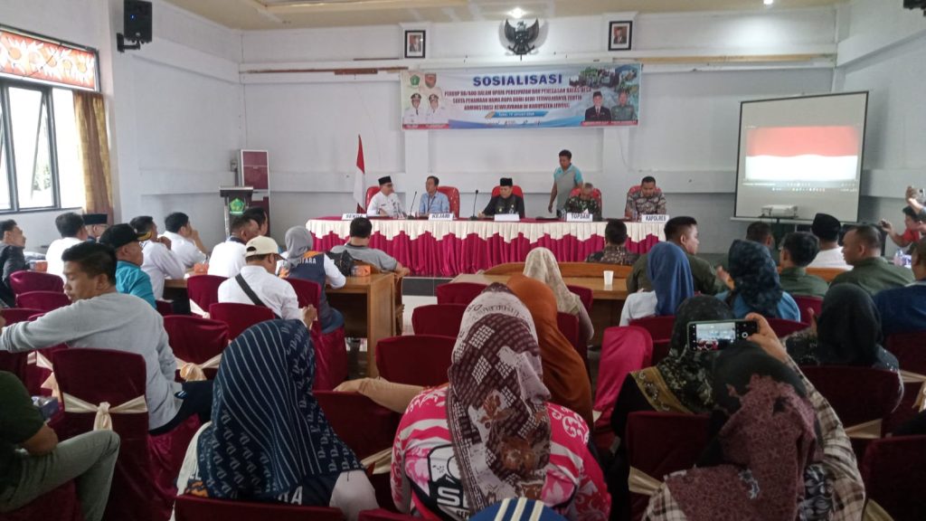 Bengkulu Post | Lebong-Pemerintah Kabupaten (Pemkab) Lebong menggelar sosialisasi Peraturan Bupati (Perbup) Dana Desa (DD) dan Alokasi Dana Desa (ADD) Dalam Upaya Percepatan Penetapan dan Penegasan Batas Desa serta Penamaan Nama Rupabumi Demi Terwujudnya Tertib Administrasi Kewilayahan di Kabupaten Lebong yang digelar di Aula Bappeda Lebong, Jum’at (19/1) sekitar pukul 09.00 WIB.