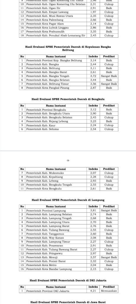 Hal itu berdasarkan Keputusan Menpan RB Republik Indonesia dengan Nomor 13 tahun 2024 tentang Hasil Evaluasi SPBE pada Instansi Pusat dan Pemerintah Daerah Tahun 2023.