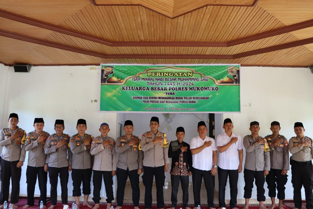Mukomuko – Bengkulu post.id.- Rabu pagi (07/02/2024, Peringatan Isra Mikraj Nabi Muhammad SAW di polres Mukomuko ini megusung tema “Hikmah Isra Mikraj Menanamkan Moral Dalam Mewujudkan Polri Presisi Siap Mengawal Pemilu Damai”.