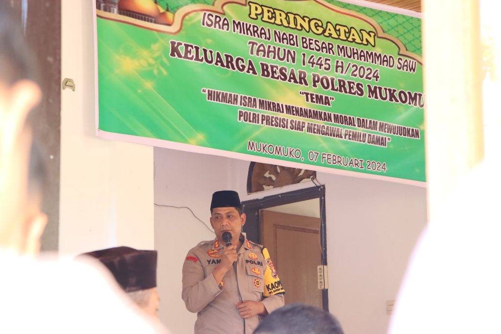 Kapolres Mukomuko AKBP Yana Supriatna, S. I. K, M. Si mengatakan “Sudah sewajarnya kita melaksanakan peringatan Isra Mikraj ini, untuk mengenal lebih dekat jejak dan perjuangan Nabi Muhammad SAW dalam menyebarkan Islam.