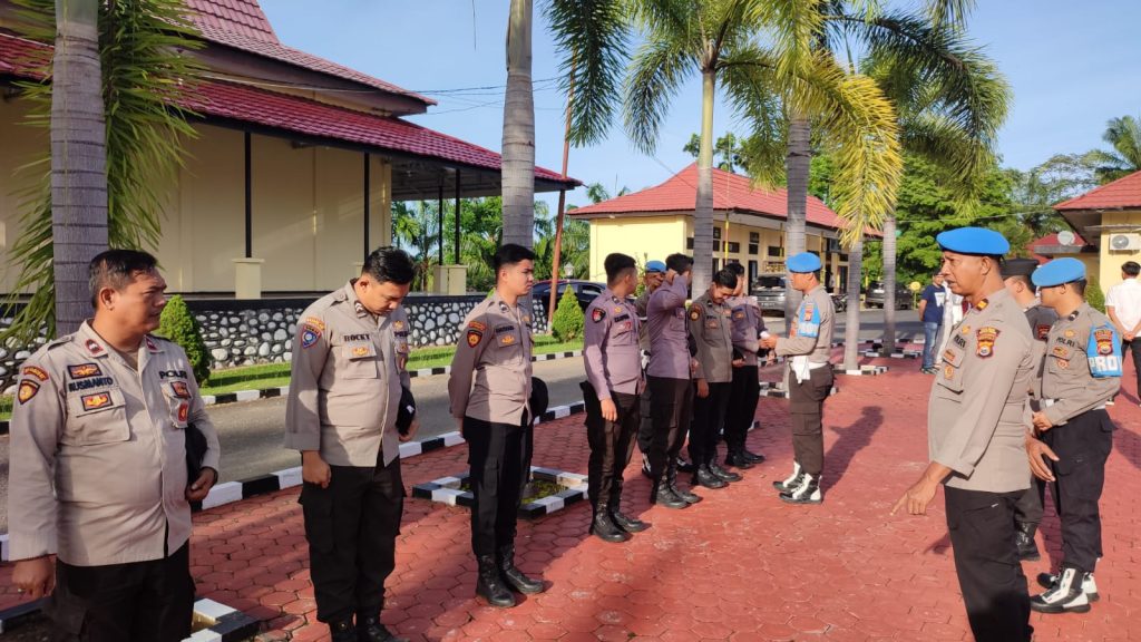 Bengkulu Post | Mukomuko_Subsatgas Profesi dan Pengamanan (Propam) yang merupakan bagian dari Satgas Ban Ops Operasi Mantap Brata (OMB) Nala 2024 , melakukan pengecekan terhadap kelengkapan,kehadiran dan sikap tampang personel yang terlibat pengamanan Pemilu 2024 di lapangan apel Polres Mukomuko