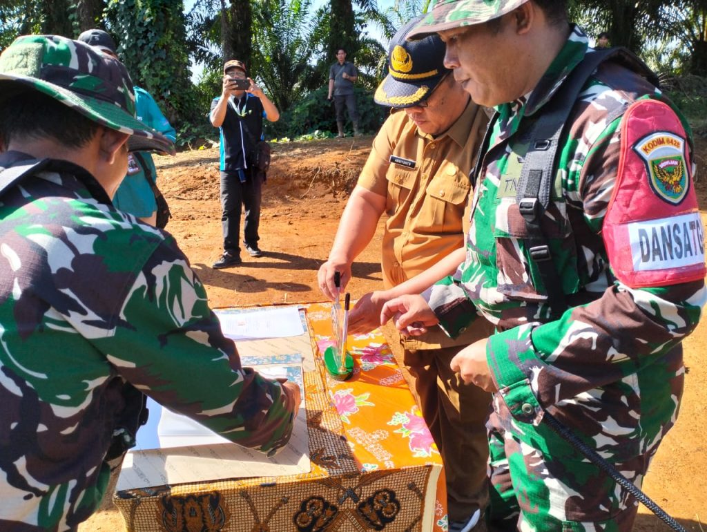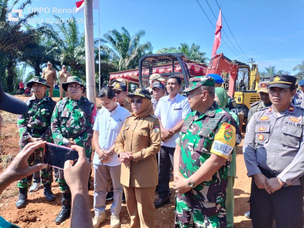 Dandim 0428, Letkol Inf Andri Suratman, Sekda, Abdiyanto, Ketua DPRD Mukomuko, M.Ali Saftaini, Anggota DPRD Mukomuko,  Busra, GM PT. DDP, Ali Nasir Purba, dan rombongan meninjau lokasi yang menjadi sasaran TMMD Reguler ke- 119 Tahun Anggaran 2024  baik secara fisik maupun non fisik.