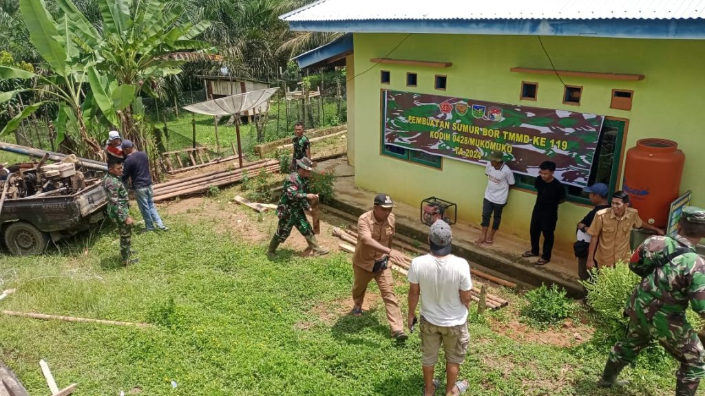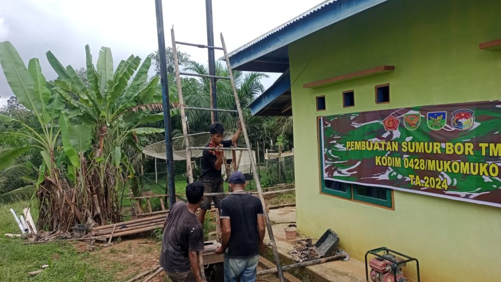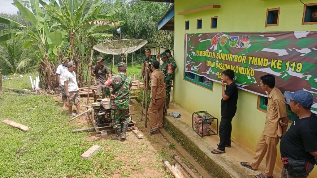Mukomuko – Bengkulupost.id. – Personel TNI Kodim 0428/Mukomuko menggalang aksi nyata untuk membantu warga membuka akses sumur bor untuk kebutuhan air bersih yang selama ini dinantikan warga.