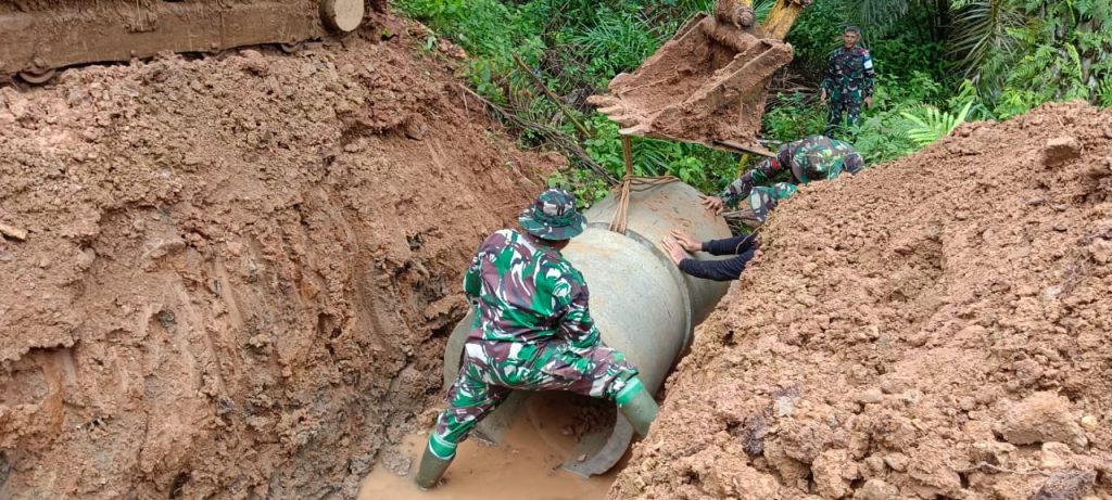 Mukomuko – Bengkulu post.id –Anggota Satgas TMMD Ke-119 Kodim 0428/Mukomuko terus berupaya bersama warga memperbaiki infrastruktur jalan, dalam upaya kali ini. Satgas TMMD telah berhasil memasang gorong-gorong sebagai solusi multifungsi untuk menghubungkan jalur jalan serta menjaga keberlangsungan infrastruktur. Desa Lubuk Talang (Trans Lapindo) Kecamatan Malin Deman Kabupaten Mukomuko Bengkulu Senin (11/03/2024)