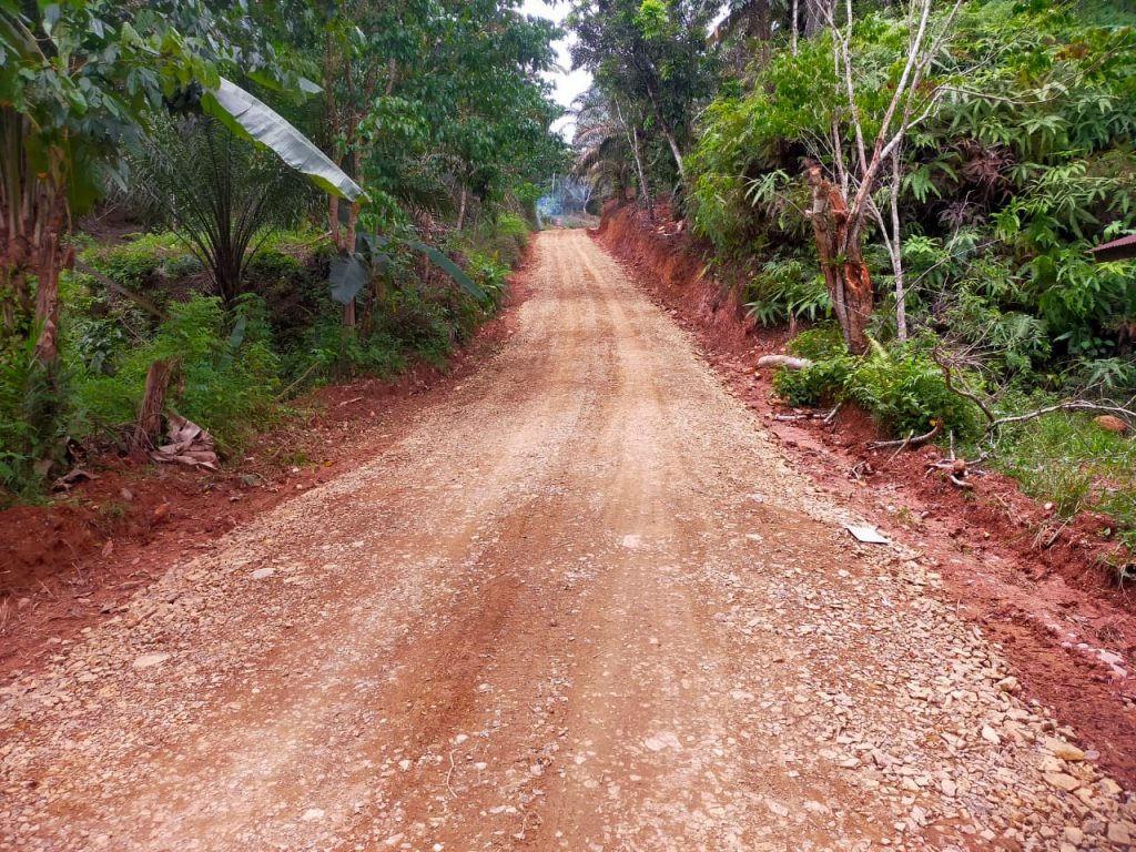 Jalan tersebut, yang merupakan akses vital bagi warga desa untuk mengangkut hasil perkebunan sawit, telah melalui transformasi signifikan. Dari kondisi yang sulit dilalui terutama saat hujan, kini jalan tersebut telah terlapisi dengan batu pecah atau koral. Hal ini diharapkan akan memberikan kemudahan bagi warga dalam melakukan mobilisasi, terutama untuk mengangkut hasil panen mereka.