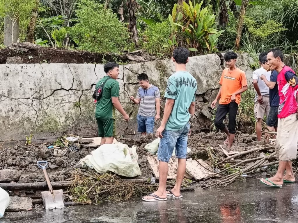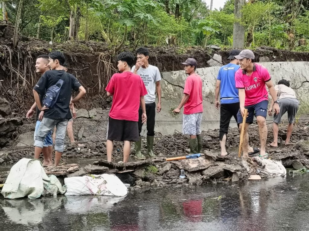 Kepahiang – Bengkulu Post.id –Sudah 2 kali jembatan air Sempiang dengan terkenal jembatan konak pasar Ujung Kepahiang Kelurahan Pasar Ujung Kecamatan Kepahiang Kabupaten Kepahiang dalam minggu ini mengalami genangan air yang cukup besar sehingga arus lalu lintas pengendara baik dari Kepahiang menuju Pagar Alam maupun sebaliknya mengalami kemacetan disebabkan air cukup deras seperti kejadian pertama pada Minggu sore(8/4) dan kemarin (10/4) sekira pukul 15.00 wib karena intensitas curah hujan cukup tinggi menyebabkan area jalan raya desa Permu Bawah sampai jembatan air Sempiang kembali banjir, hal ini disebabkan meluapnya aliran air drainase ke jalan raya dan menggenangi jembatan jika tidak ditangani segera maka dikhawatirkan pondasi penahan jembatan akan ambrol mengingat pelapis tebing disisi kanan arah Pagar Alam dan tanah disisi kanan jembatan mulai tergerus, Antisipasi jangan sampai kembali terjadi meluapnya air drainase gabungan(kolaborasi) beberapa warga desa bergotong royong membersihkan drainase, terpantau Kamis pagi (11/4/2024).