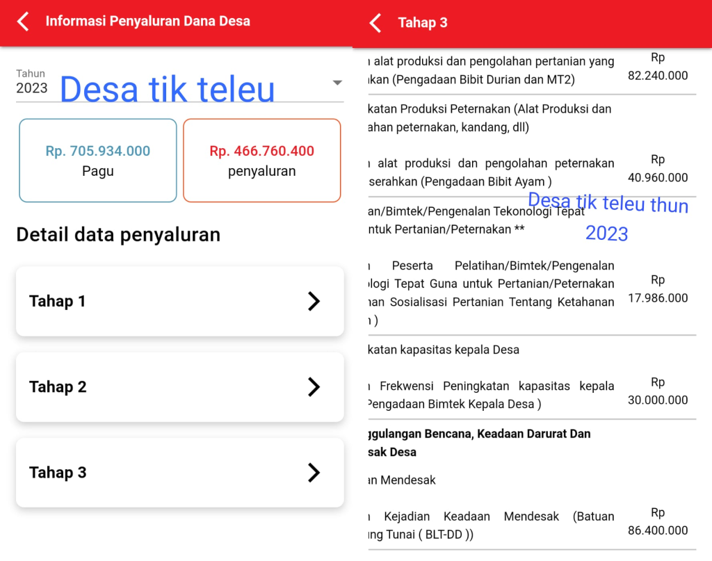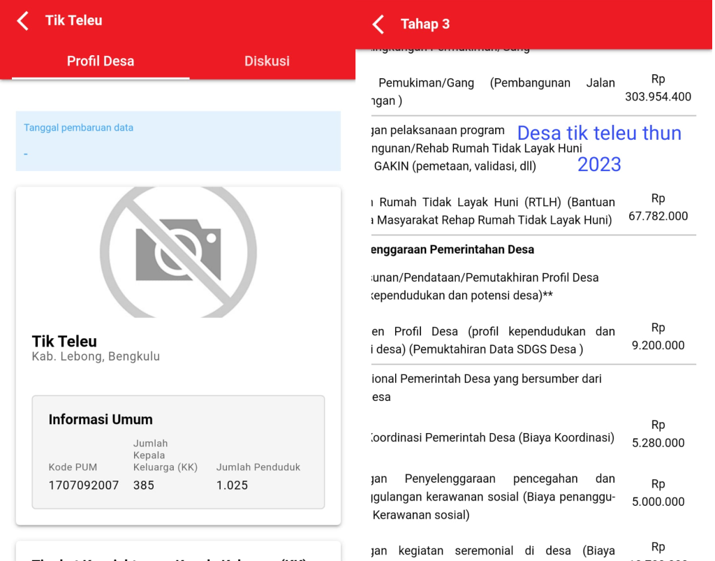 Dilansir dari papan informasi yang terpasang di lokasi pembangunan tertera bahwa, pemerintah Desa Tik teleu.kecamatan Tubei.Memiliki kegiatan di tahun anggaran 2023 berupa..