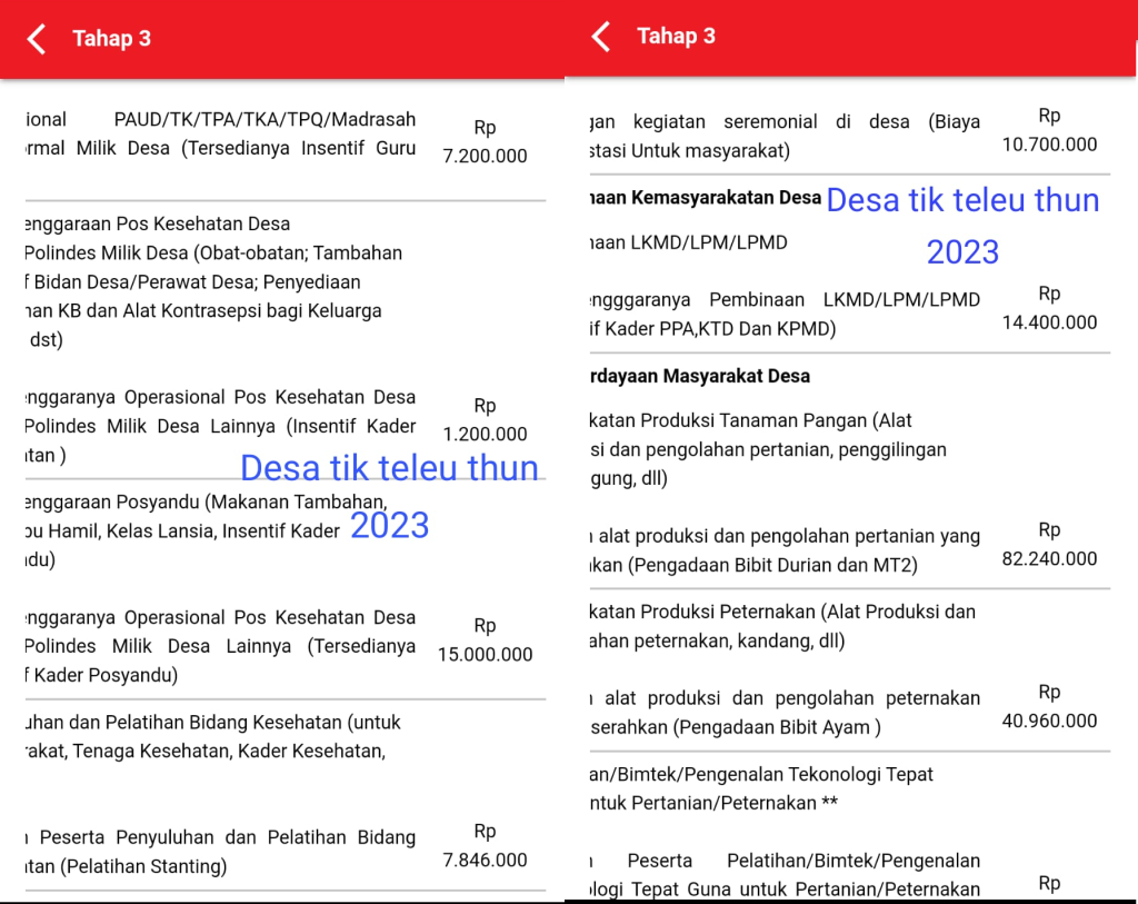 3,Biaya berprestasi untuk masyarakat di tahun 2023 dengan anggaran Rp 10.700.000.Di duga Ada permainan kepala desa dari dana tersebut..