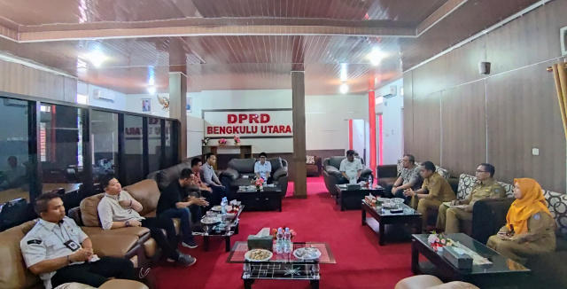 Rombongan Komisioner KPU Bengkulu Utara yang dipimpin oleh Ketua KPU, Santoso,S.Pd diterima langsung oleh Ketua DPRD Bengkulu Utara yang didampingi oleh Waka I Juhaili dan Waka II Herliyanto serta Sekwan DPRD BU Evi Fitriani di ruangan kerja Ketua DPRD Bengkulu Utara.
