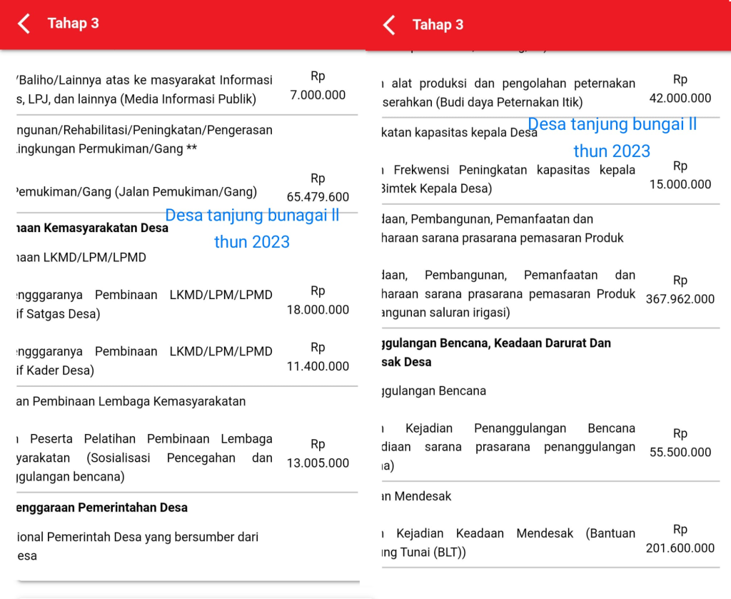 10,(kegiatan seremonial di desa) di tahun 2023 dengan nilai Rp 16.072.000.Di duga dana tersebut tidak diserahkan semua.indikasi dana tersebut masuk kantong pribadi semata..
