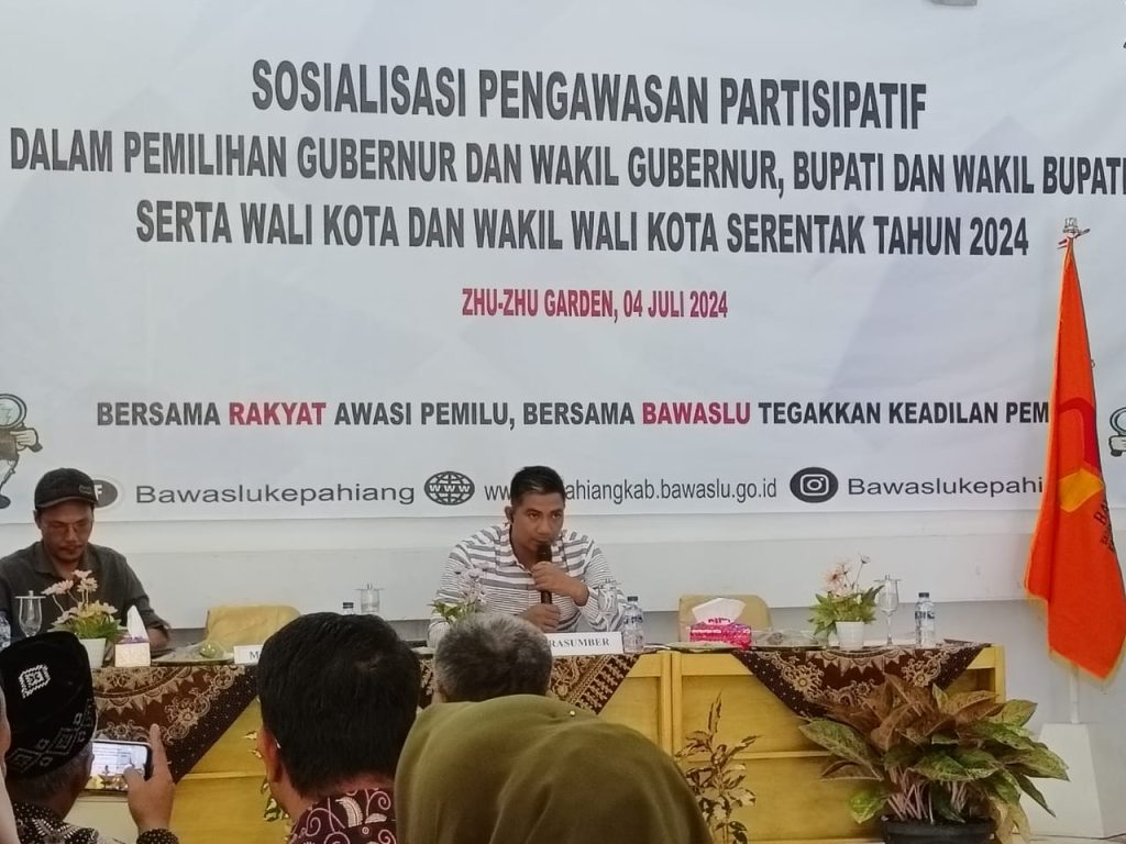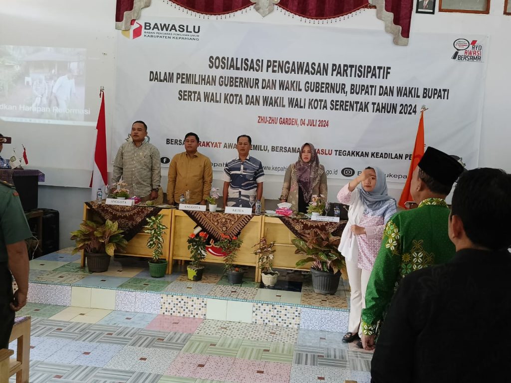Kepahiang – Bengkulu Post.id –Badan Pengawas Pemilu (Bawaslu) Kepahiang menggelar sosialisasi pengawasan partisipatif dalam pemilihan Gubernur dan Wakil Gubernur, Bupati dan Wakil Bupati serta Wali Kota dan Wakil Wali Kota serentak 2024, kegiatan dilaksankan diruang aula Zhu-Zhu Garden Kota Kepahiang, pada Kamis pagi (4/7/2024).