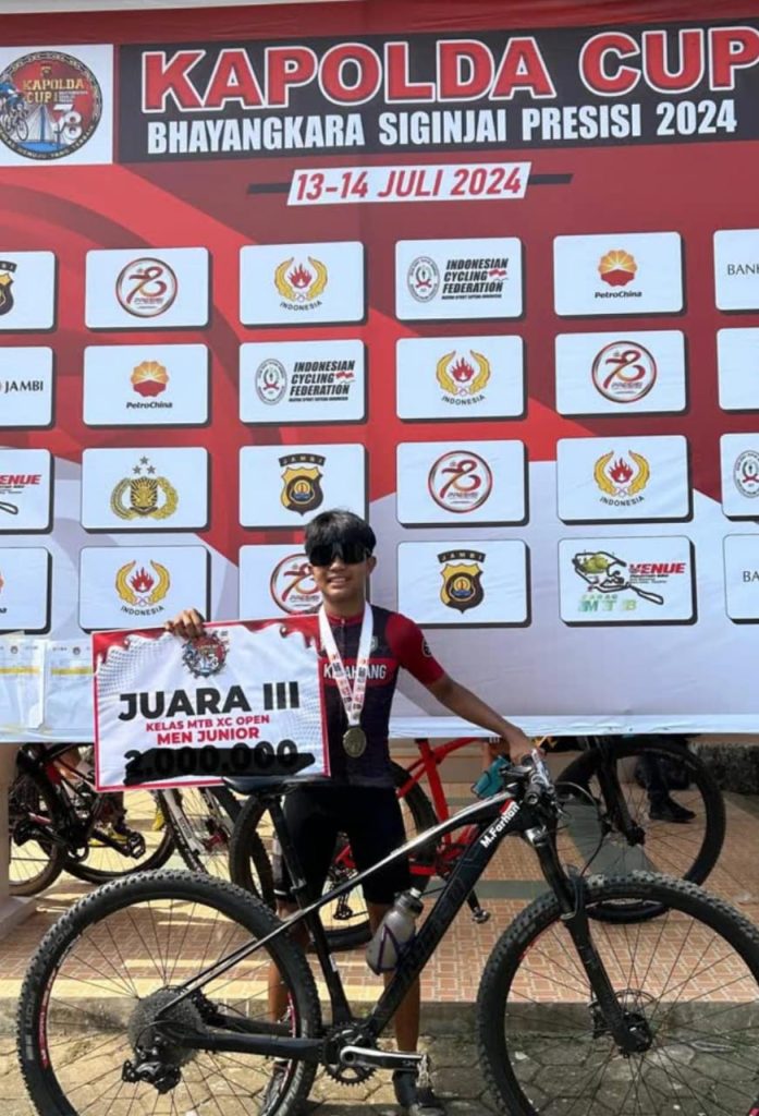 Kepahiang – Bengkulu Post.id –Olah raga sepeda sangat banyak digemari oleh masyarakat mulai penghobi fine bike (sepeda santai) road bike, mountain bike cross country demikian juga digemari oleh salah satu anak muda bernama M. Farhan (16 tahun) asli putra Kepahiang beralamat di Kelurahan Pasar Kepahiang Kecamatan Kepahiang sejak 2 tahun terakhir ini rutin berlatih mendayung sepeda spesialisasi bidang mountain bike cross country (MTB) dimana ia dilatih oleh seniornya jugo penghobi oleh raga sepeda MTB, demikian disampaikan Farhan didampingi seniornya Kms. Nangcik dan Muhammad Nasir pembina ISSI Kabupaten Kepahiang, pada Kamis sore (25/7/2024).