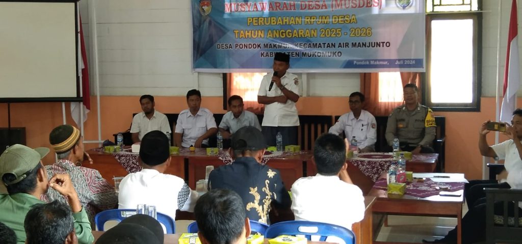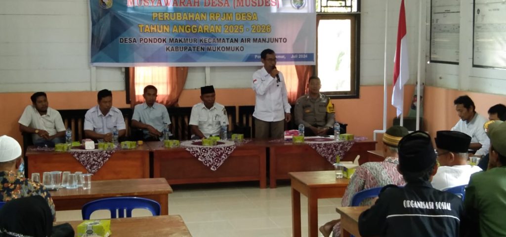 Berdasarkan Amanat Undang Undang No 3 tahun 2024, Pemerintahan Desa Sido Makmur melaksanakan Musyawarah Desa Perubahan Rencana Pembangunan Jangka Menengah Desa (Musdes RPJMDes) untuk Tahun Anggaran 2025-2026, kegiatan yang digelar di Aula Kantor Desa Pondok Makmur Kecamatan Air Manjunto Mukomuko, turut dihadiri Camat dan Kasi Ekobang Kecamatan Air Manjunto, TAPM P3MD Kabupaten Mukomuko dan Pendamping Desa, Ketua BPD dan jajarannya, Bhabinkamtibmas, PKK, Tokoh masyarakat, Tokoh Agama, Tokoh Pemuda, Tokoh Perempuan para Ketua RT dan lainnya, Rabu (31/7/29).