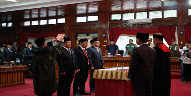 Rangkaian acara rapat paripurna istimewa pengucapan sumpah/janji pimpinan DPRD berjalan lancar dan khidmat.[Tem]