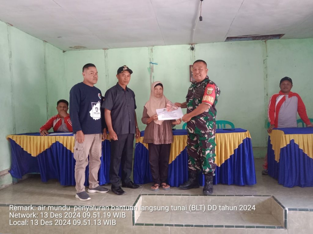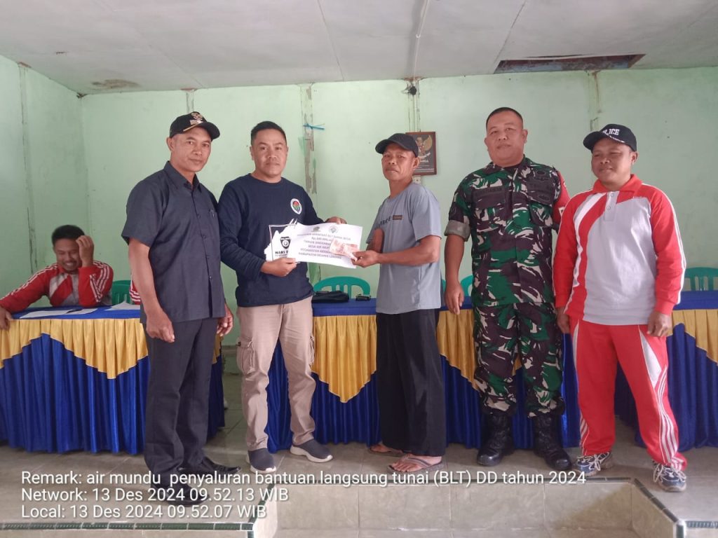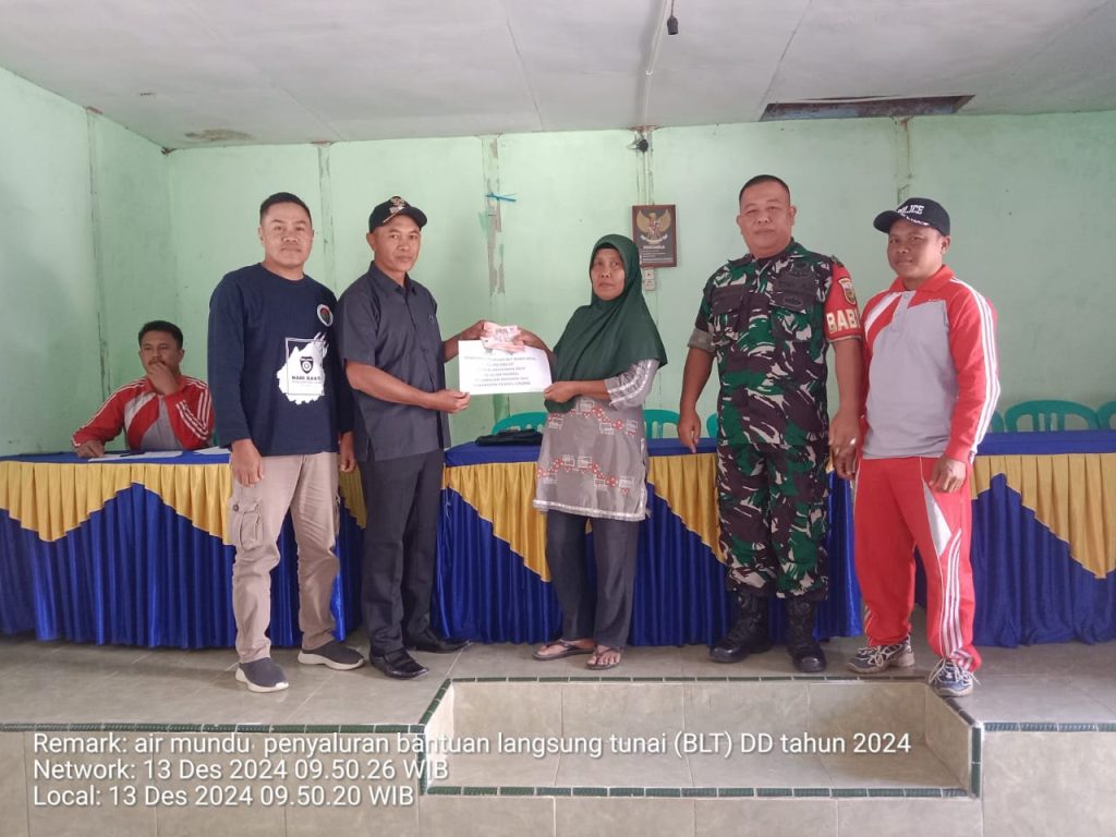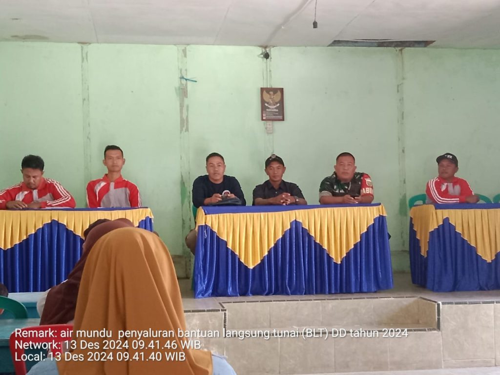 Kegiatan ini dipimpin langsung oleh Kepala Desa Air Mundu , yang dalam sambutannya menyatakan bahwa pemerintah desa berkomitmen kuat untuk terus menyalurkan BLT secara rutin dan tepat waktu setiap bulannya kepada masyarakat yang telah terdata sebagai penerima manfaat.