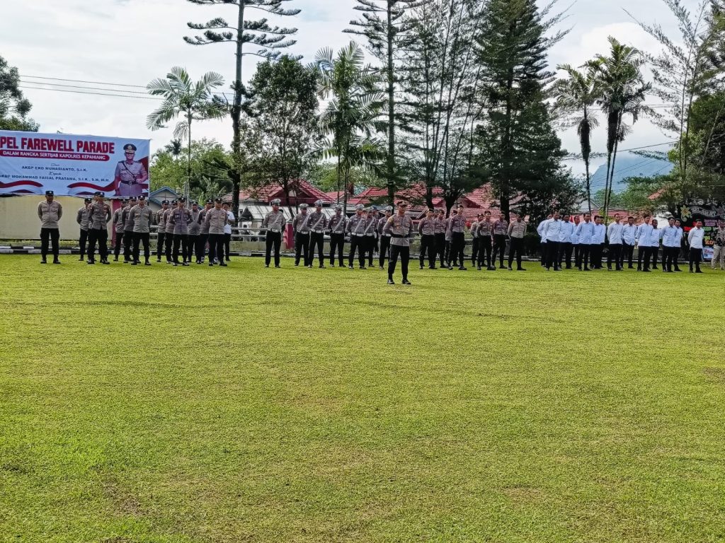 Selanjutnya dilaksanakan giat apel bersama dipimpin AKBP Eko Munarianto menyampaikan ucapan terima kepada seluruh personil Polres Kepahiang selama menjabat sebagai Kapolres dalam rangka melaksanakan tugas di wilayah hukum Polres Kepahiang selama satu tahun dengan kondisi Kamtibmas wilayah Kabupaten Kepahiang tetap kondusif, aman, adem dan pada hari ini saya beserta keluarga menghaturkan terima kasih atas kerjasama dalam menjalankan tugas.