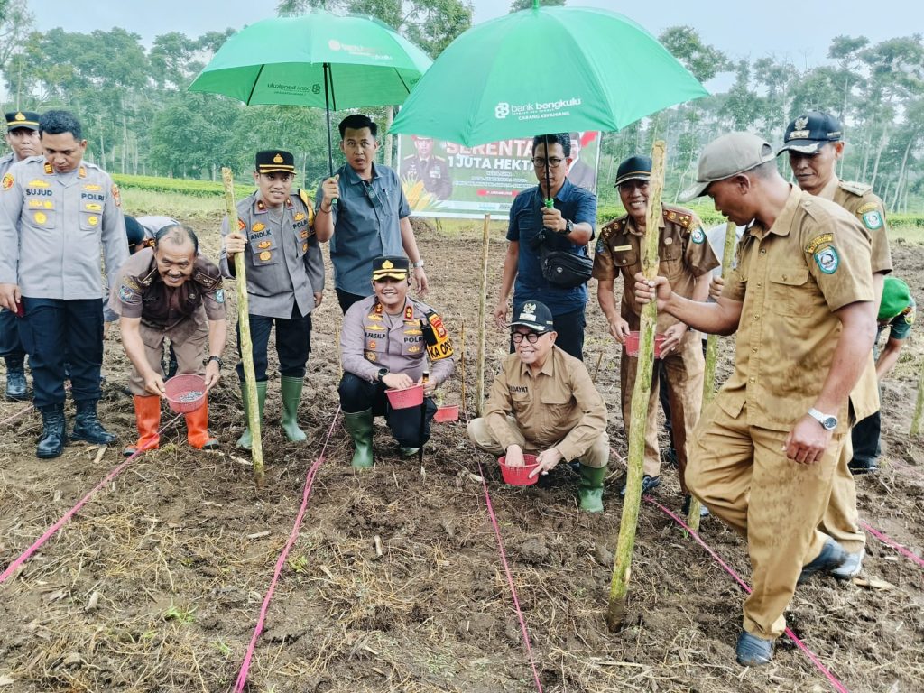Kepahiang – Bengkulu Post.id –Menindaklanjuti perintah serta melaksanakan salah satu program (Asta Cita) Presiden Prabowo dalam rangka meningkatkan program ketahanan pangan bekerjasama dengan seluruh elemen Pemerintah baik Polri, TNI, Kementerian serta Pemerintah Daerah secara serentak pada hari ini, begitupun dilaksanakan Polres Kepahiang bekerja sama dengan Pemerintah Daerah Kabupaten Kepahiang melakukan penanaman jagung, pelaksanaan kegiatan dilakukan di area kebun teh desa Air Sempiang Kecamatan Kabawetan Kabupaten Kepahiang, pada Selasa pagi (21/1/2024).