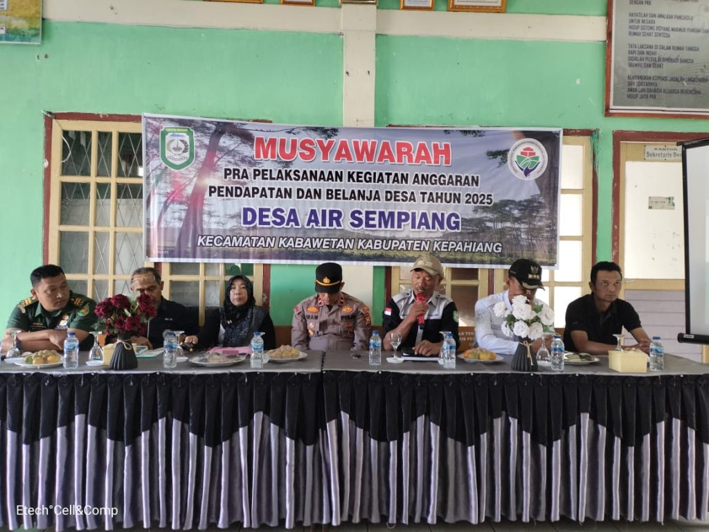 Kepala Desa Air Sempiang Mugianto usai pelaksanaan musyawarah Pra Pelaksanaan menyampaikan tadi telah digelar musyawarah terkait penetapan kegiatan menggunakan Dana Desa tahun anggaran 2025 juga disaksikan pihak – pihak terkait.