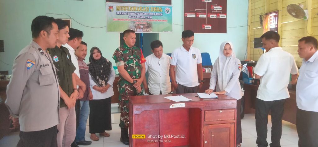 Mukomuko-Bengkulupost.id. –Pemerintah Desa Talang Petai melakukan Musyawarah Desa Serah Terima (MDST) Pembangunan Fisik Jalan Usaha Tani (JUT) Tahap I DD Tahun 2025,